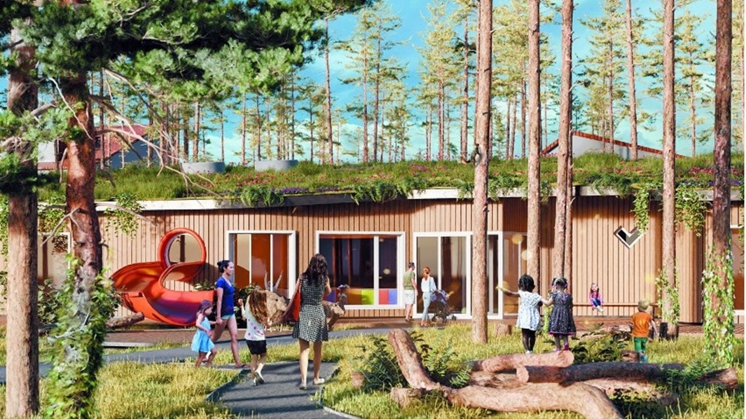 Dużym atutem inwestycji będzie ogromny plac zabaw zaplanowany w naturalnym otoczeniu. Teren został wytyczony tak, by ograniczyć wycinkę drzew i maksymalnie wykorzystać istniejący drzewostan. Powstanie tu leśny ogród zabaw podzielony na trzy strefy tematyczne: