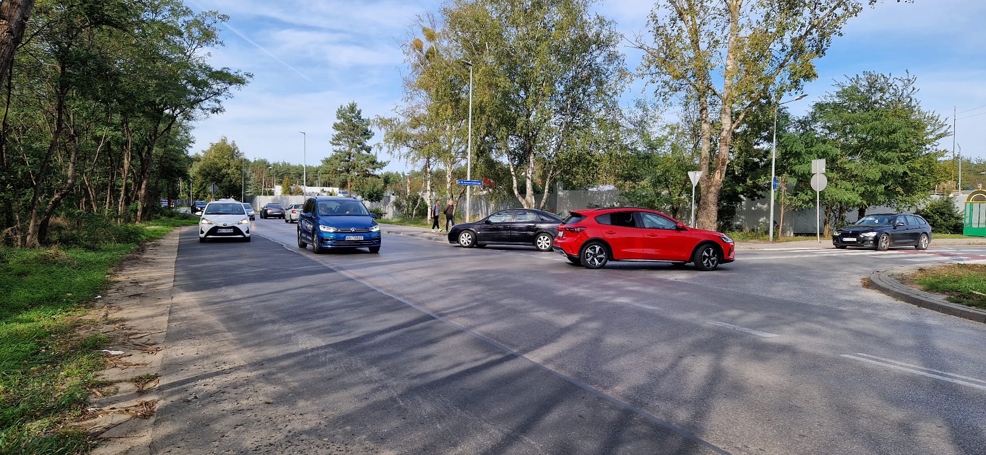 Ponieważ władze starostwa zmieniały zdanie – najpierw planowano lewoskręt, potem rondo – i dotychczas wszystko przeciąga się w czasie, drogowcy wpadli na „sprytny” pomysł i niedawno położyli na „pasie dla niecierpliwych” asfalt! Jazda tam przypomina trochę wolną amerykankę – zupełnie jak na skrzyżowaniach w Indiach, gdzie obowiązuje jedna zasada: kto pierwszy, ten lepszy. Mimo trąbienia i przeciskania się aut, jak na razie wszyscy tam „żyją” i na szczęście nie doszło do żadnej kraksy. – Ten asfaltowy pasek na poboczu nie rozwiązuje problemu korków, ale przynajmniej nie trzeba stać w zatorze za każdym autem skręcającym na osiedle – komentują kierowcy.