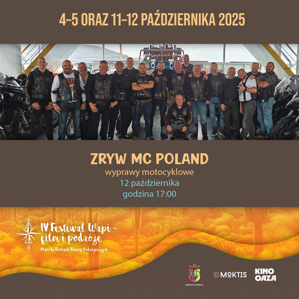- 17:00–20:00 – Spotkanie: Klub motocyklowy: Zryw MC Poland. – motocyklem przez świat.