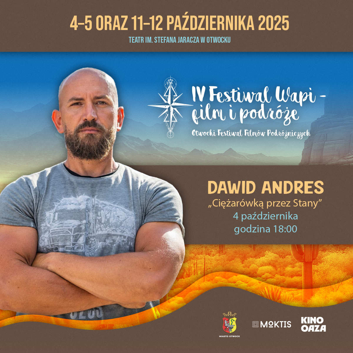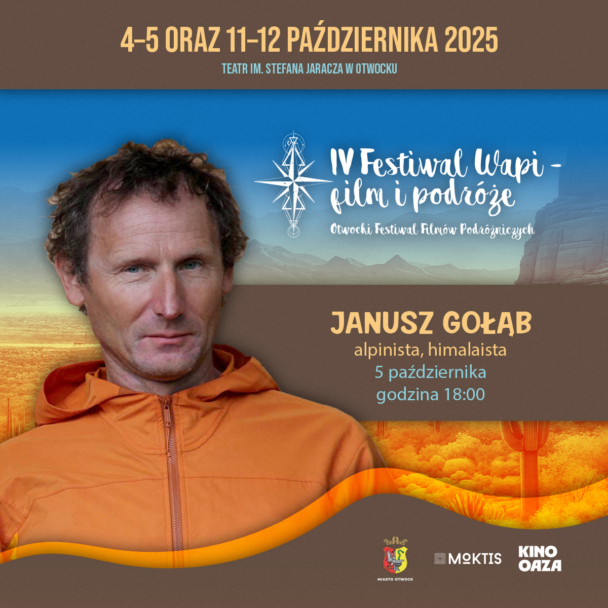 Najbliższe dwa weekendy w Otwocku zapowiadają się bardzo ciekawie. Przed nami 4. edycja Festiwalu WAPI – Film i Podróże. – Zapraszamy na niezwykłą wyprawę bez wychodzenia z sali kinowej w Teatrze Miejskim im. Stefana Jaracza – mówią organizatorzy. I podkreślają, że to nie tylko kino, ale także okazja, by poczuć ducha wielkich ekspedycji, odkryć nieznane kultury i zainspirować się do własnych podróży. Wśród gości znajdą się m.in. himalaista Janusz Gołąb, podróżnik Dawid Andres oraz biegacz ekstremalny Tomasz Sobania.