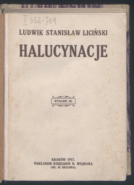 - „Halucynacje”, 1911 – opublikowane już po śmierci autora. Zbiór nowel i opowiadań których fabuła rozgrywa się w świecie warszawskiego lumpenproletariatu. Motywem przewodnim tych utworów jest antynomia indywiduum i wspólnoty, walka o ideał i idee w życiu i literaturze, wiara w posłannictwo i potęgę sztuki.