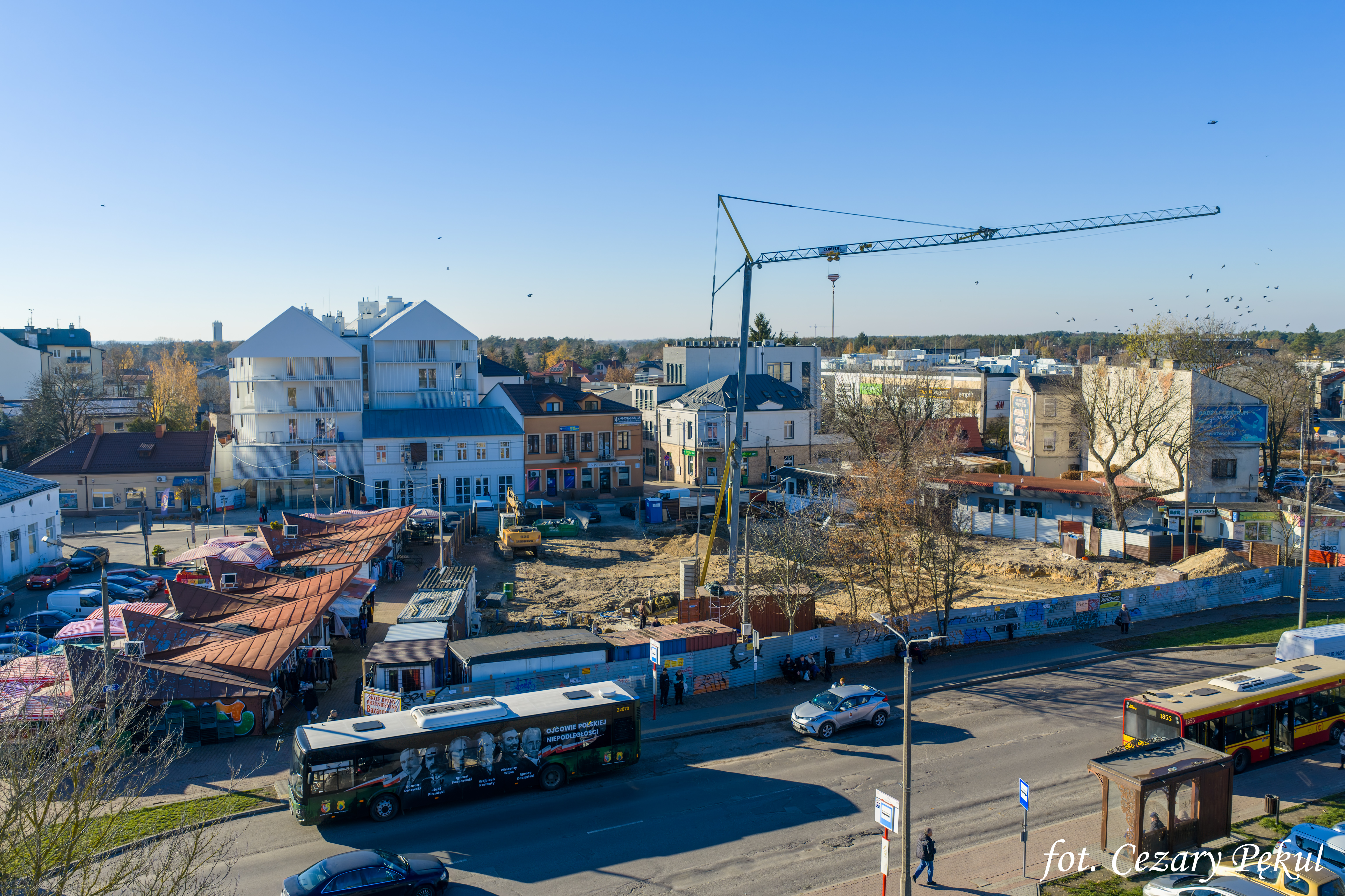 Tymczasem tuż obok „domu z dwiema wieżami”, na terenie po dawnych bazarku pomiędzy ulicami Orlą, Pod Zegarem i Andriollego, zburzono większość pawilonów i właśnie rozpoczyna się budowa nowego miejskiego obiektu handlowo-usługowego w stylu świdermajer. Będzie tam kilkadziesiąt miejsc parkingowych, a także zagospodarowana zieleń, fontanna i przestrzeń przyjazna zarówno kupcom, jak i mieszkańcom.
