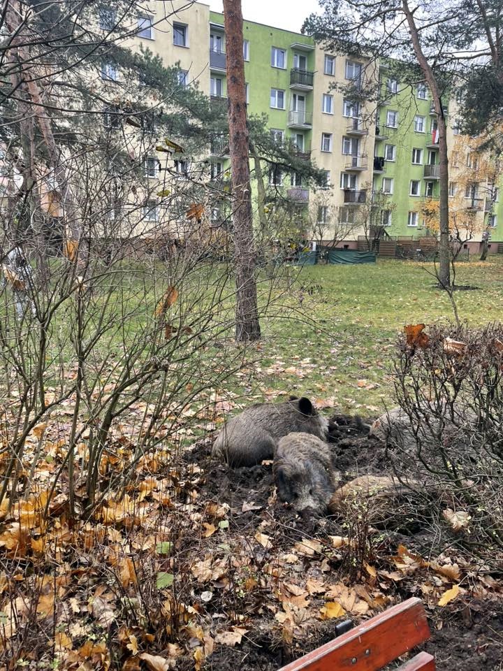 Choć dramat Burka poruszył wielu mieszkańców, nie jest to jedyny sygnał, że dziki coraz częściej pojawiają się w miastach. Jak już wcześniej informowaliśmy, policja niemal codziennie otrzymuje zgłoszenia o incydentach z ich udziałem. Kilka dni temu zwierzaki ganiały się przed otwocką komendą policji. Być może to te same dziki, które buszowały w środku dnia na osiedlu przy ul. Sportowej. Filmik, który nagrał jeden z mieszkańców, opublikowaliśmy na naszym profilu FB. Z kolei w komentarzach pani Anna opublikowała zdjęcie dzików, które – po tym, jak przeorały trawnik między blokami – po prostu położyły się, żeby odpocząć.