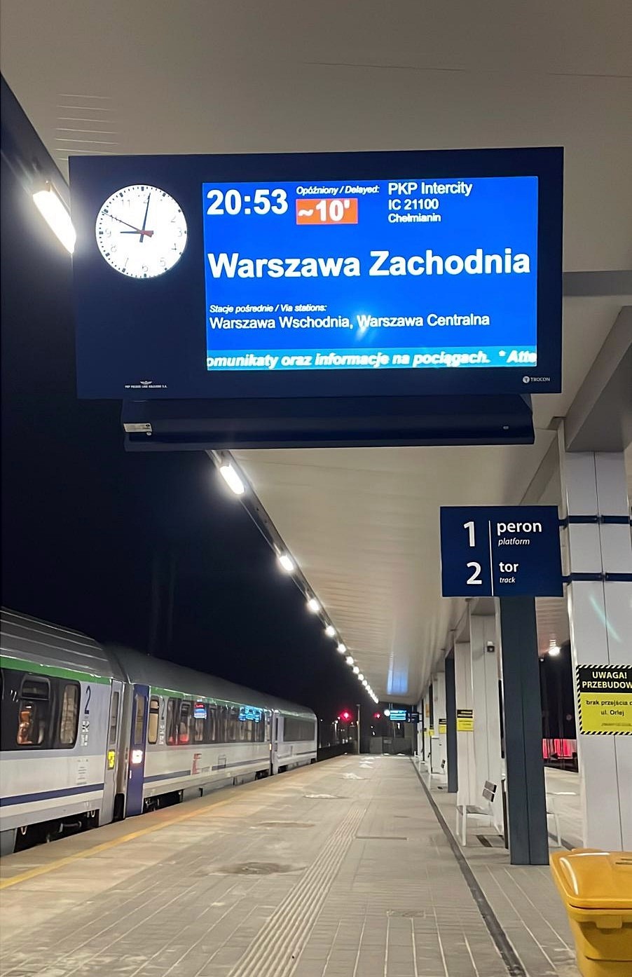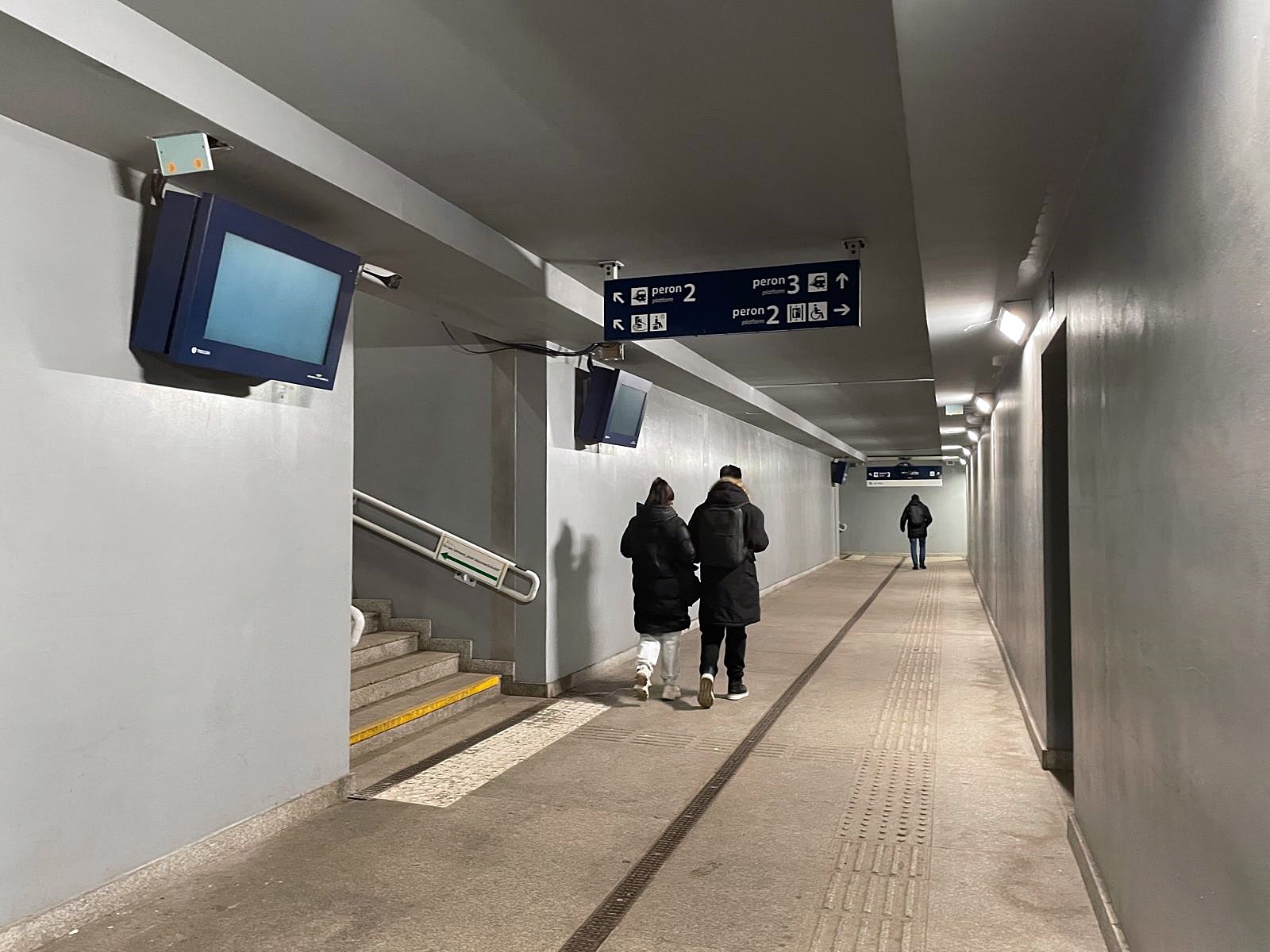Nowe tablice informacji pasażerskiej i głośniki zamontowano także w przejściu podziemnym przy peronach, ale na razie jeszcze nie działają. Równolegle z instalacją systemu informacji pasażerskiej prowadzony jest montaż kamer monitoringu na peronach oraz w przejściu podziemnym.