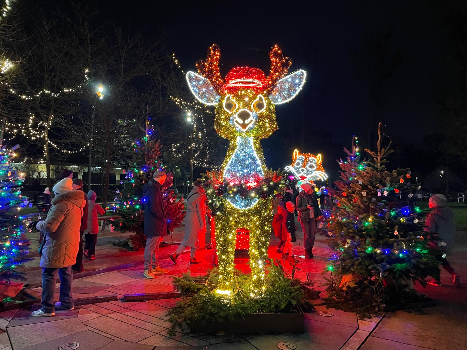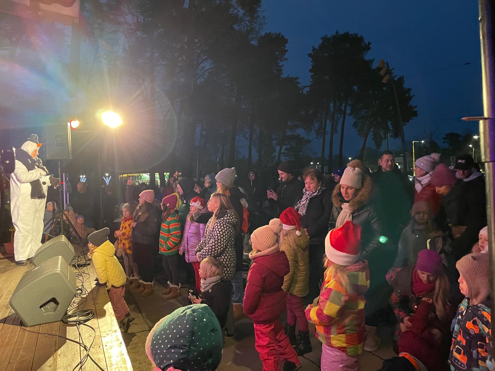 Uroczyste włączenie dekoracji na skwerze przy ośrodku kultury i urzędzie miasta odbyło się w Mikołajki, 6 grudnia. Najmłodszych mieszkańców szczególnie zachwyciły nowe świetlne postacie – duży kot, pies oraz renifer. Włączenie iluminacji było częścią mikołajkowego dnia przygotowanego przez miasto dla dzieci i rodzin. Przed południem w sali widowiskowej Miejskiego Ośrodka Kultury zaprezentowano spektakl „Bałwankowa Kraina” dla dzieci. Po południu wydarzenia przeniosły się na skwer, gdzie odbył się rodzinny koncert „Bałwanek Luli”, a jego finałem było uroczyste rozświetlenie świątecznych iluminacji.