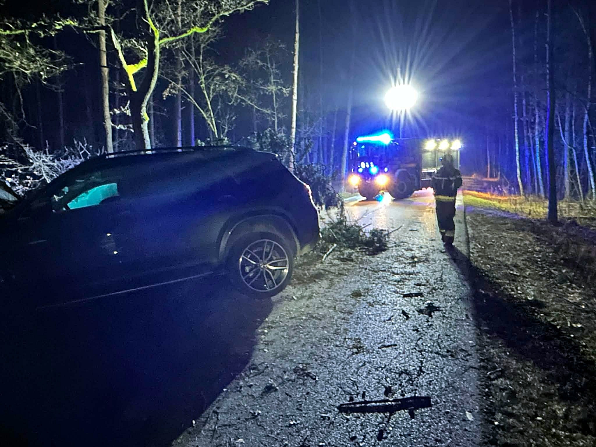 W sobotę, 14 grudnia, około godz. 20.30 służby ratunkowe zostały wezwane do zdarzenia na lokalnej drodze w zalesionej części Dyzina w gminie Celestynów. Kierowca mercedesa zjechał z jezdni i uderzył w drzewo. Na miejscu interweniowały policja oraz straż pożarna: OSP Dyzin i JRG Otwock.