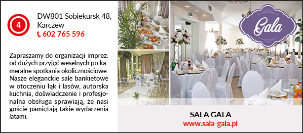 DW801 Sobiekursk 48, Karczew, tel. 602 765 596, www.sala-gala.pl
