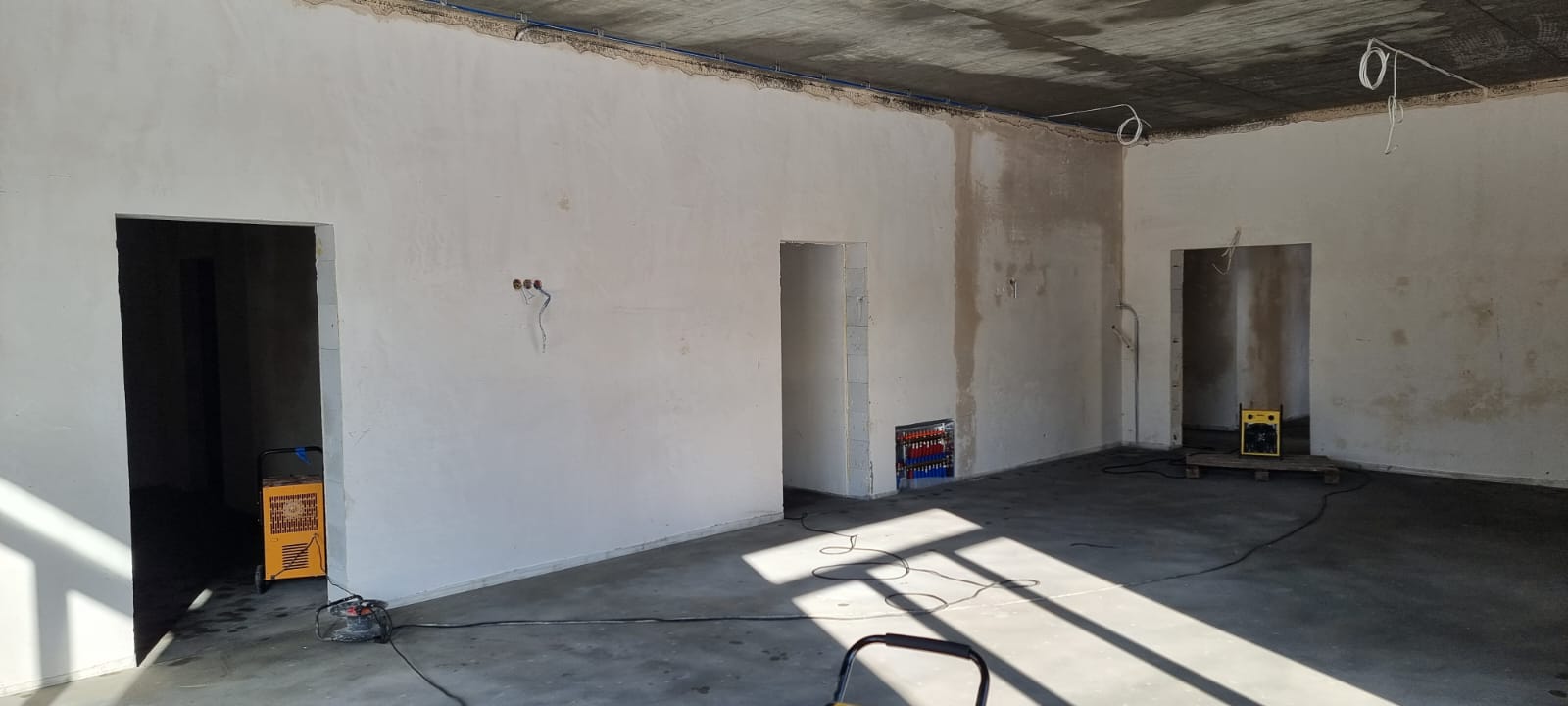 Na przełomie roku wykonano szereg kluczowych prac budowlanych i instalacyjnych. Na dachu obiektu zamontowano instalację fotowoltaiczną, zakończono rozprowadzenie instalacji elektrycznej, hydraulicznej oraz kanalizacyjnej, a także wykonano ogrzewanie podłogowe. Zakończyły się również prace tynkarskie oraz wylano szlichtę.