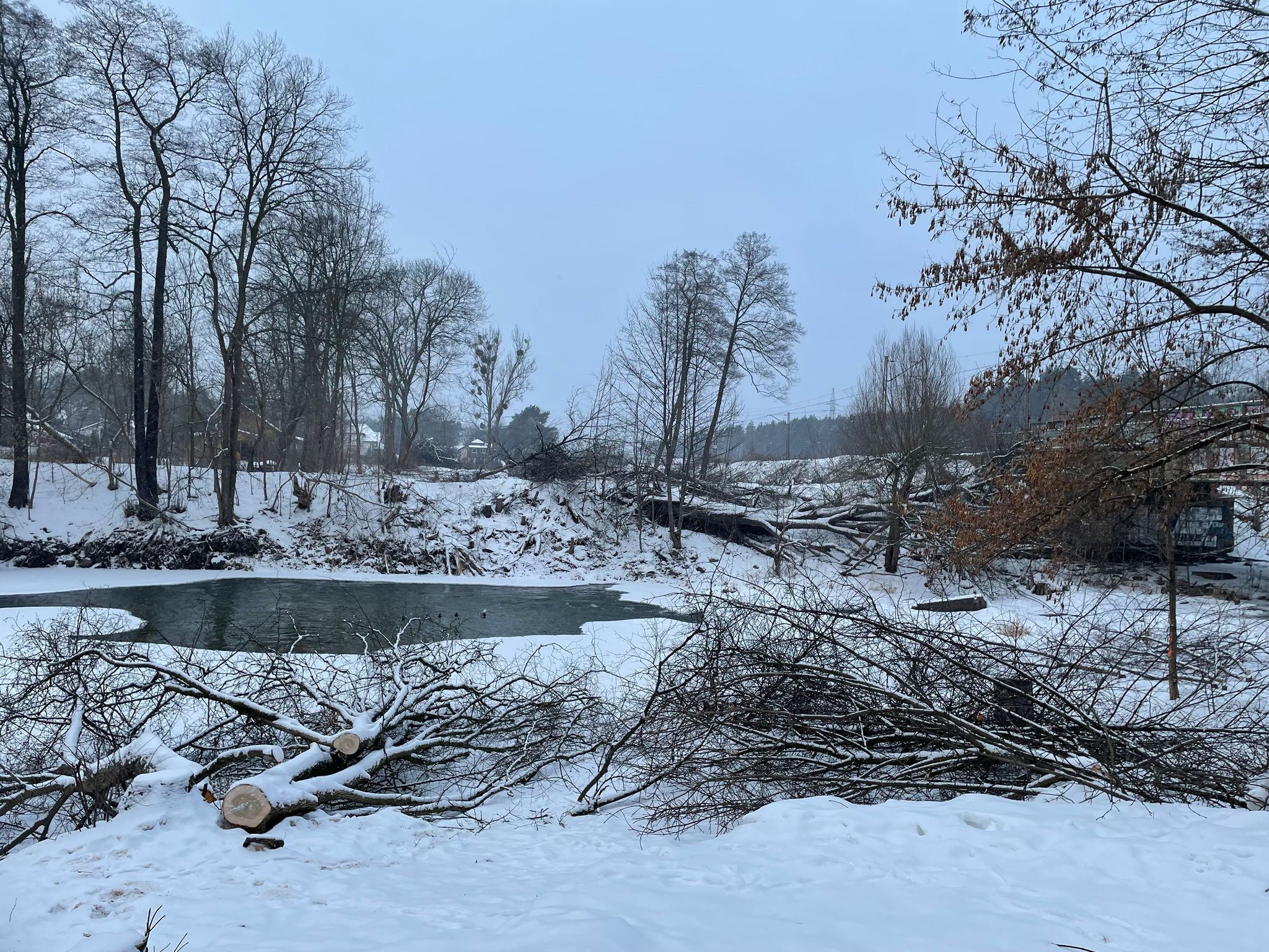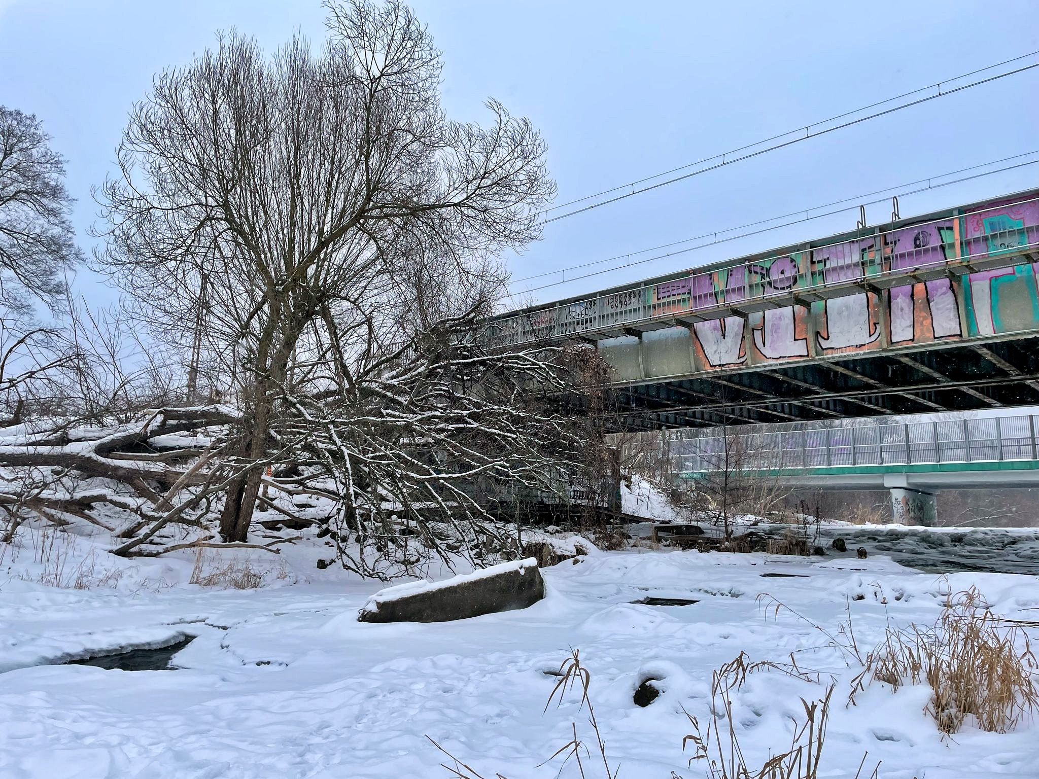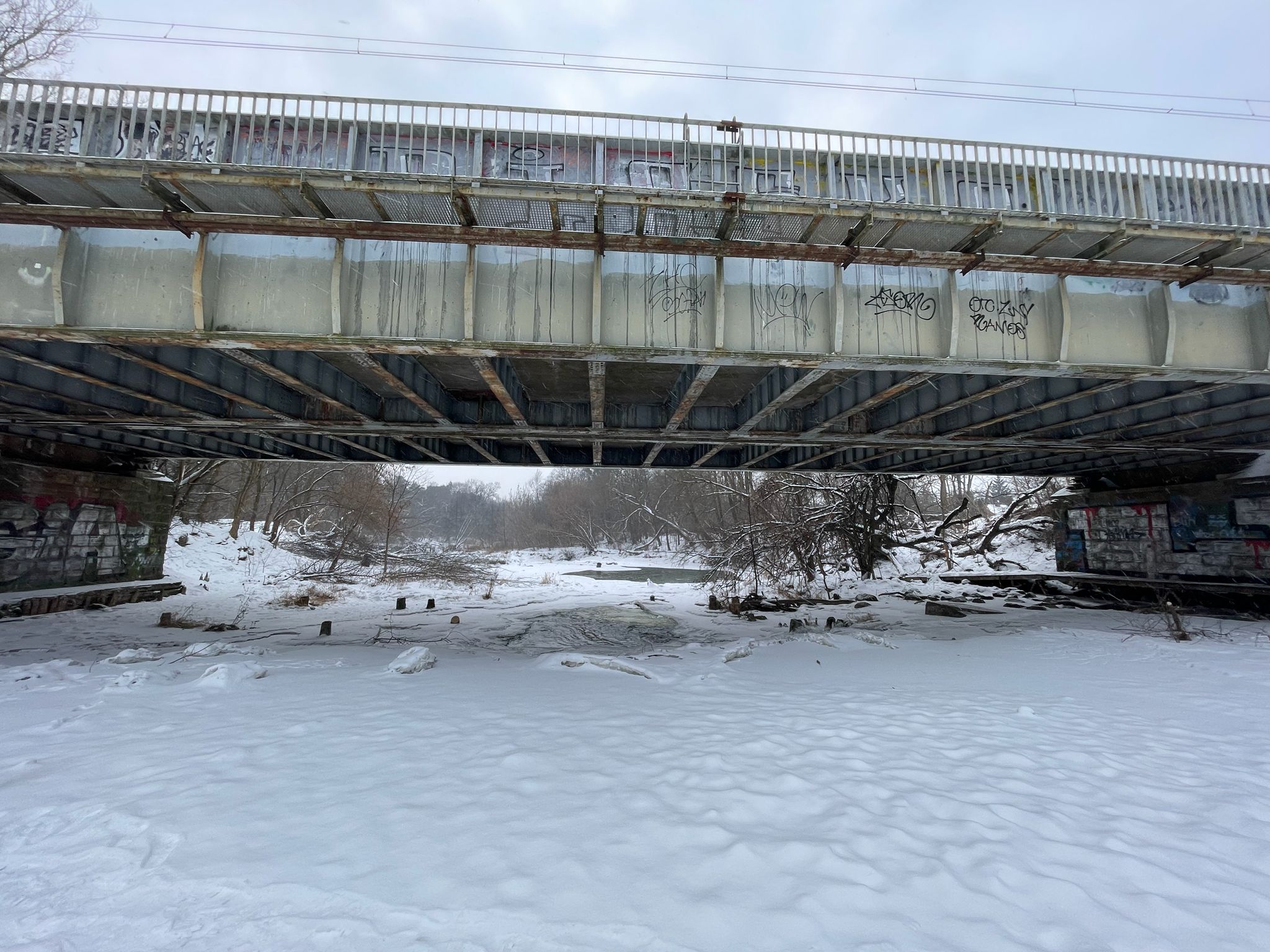 Siarczyste mrozy, które od kilku dni utrzymują się na Mazowszu, sprawiły, że rzeka Świder pomiędzy Otwockiem i Józefowem niemal całkowicie zamarzła. Pod kolejowym mostem, którym codziennie przejeżdżają pociągi w stronę Warszawy i Dęblina, widać przede wszystkim lód, śnieg i skute zimą nurt rzeki. Zamarznięte brzegi, białe zaspy i lodowe tafle tworzą wyjątkowy, choć surowy krajobraz. W niektórych miejscach rzeka jeszcze płynie pod cienką warstwą lodu, ale większość jej powierzchni pokrywa gruba śnieżno-lodowa skorupa.