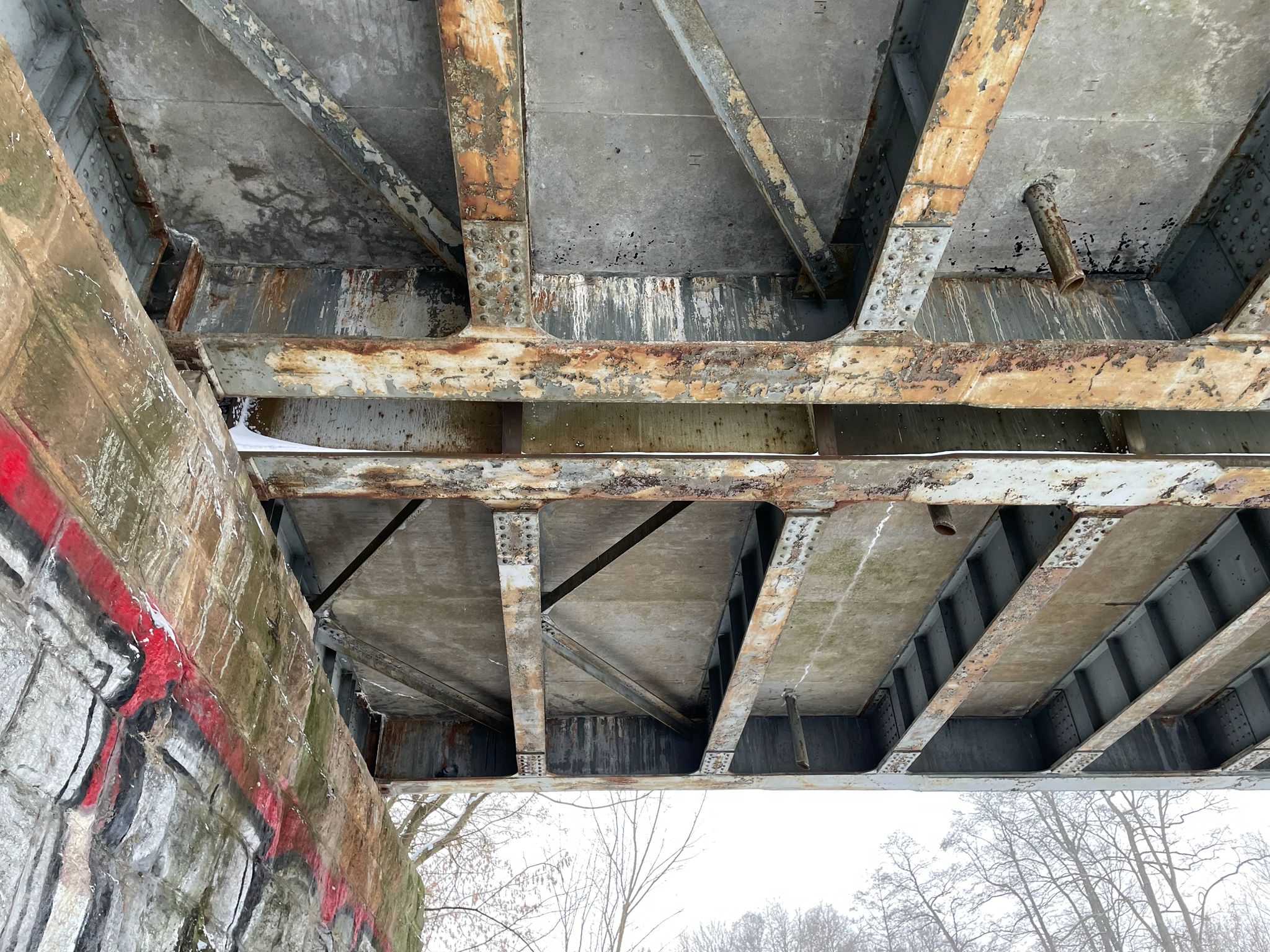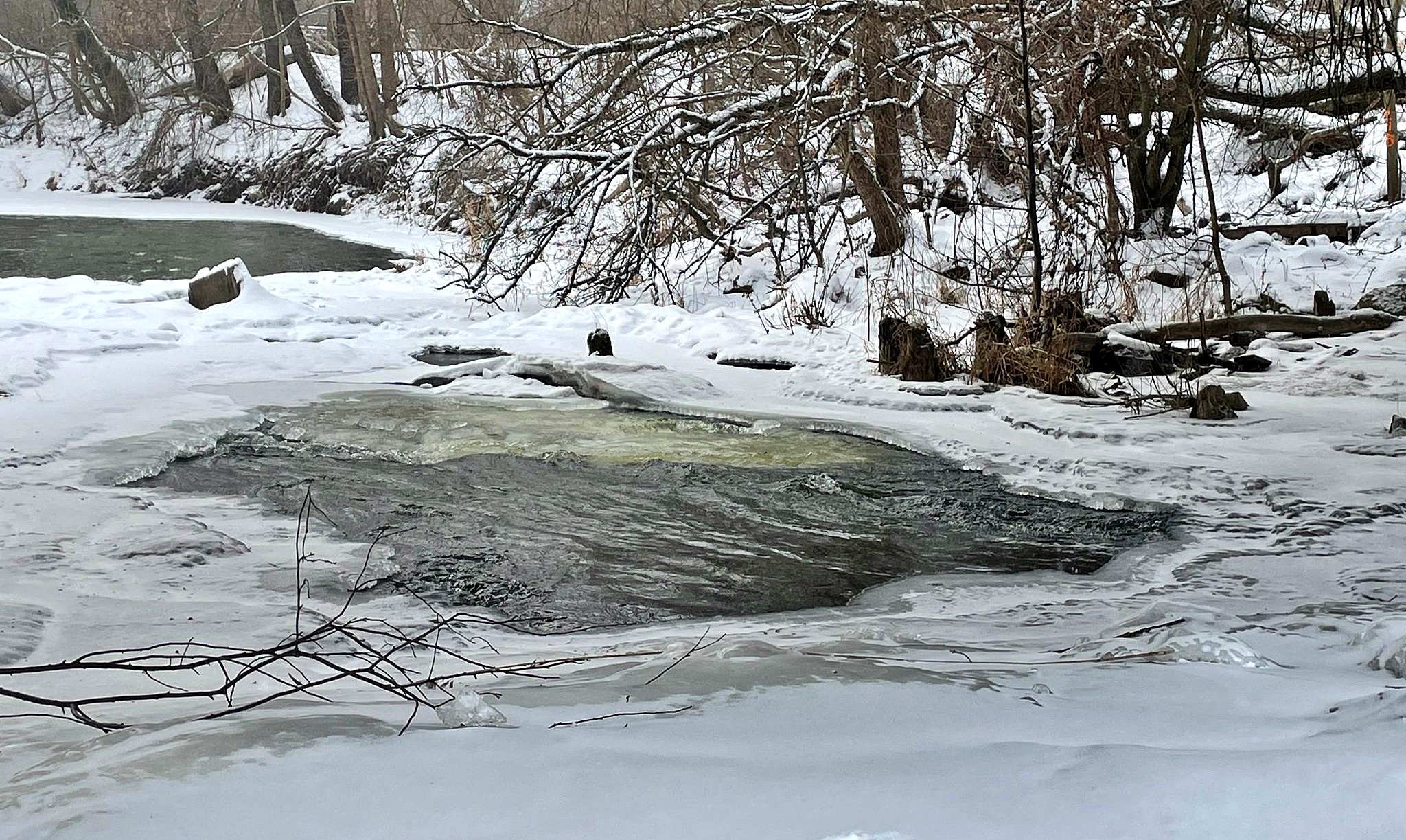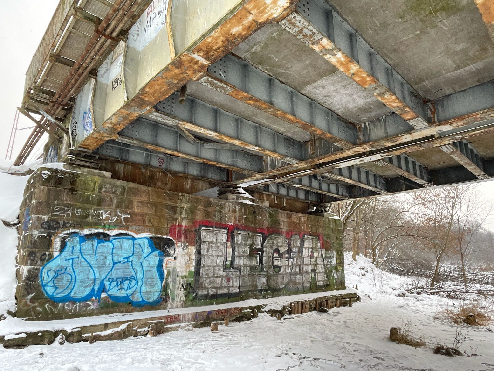 Mroźna aura daje się we znaki nie tylko mieszkańcom, ale i zwierzętom. Pod mostem kilka gołębi znalazło schronienie przed przeszywającym wiatrem, chowając się w zaciszu betonowych konstrukcji. Z kolei na rzece, mimo lodu i śniegu, wciąż można dostrzec kaczki, które trzymają się nie zamarzniętych fragmentów nurtu.