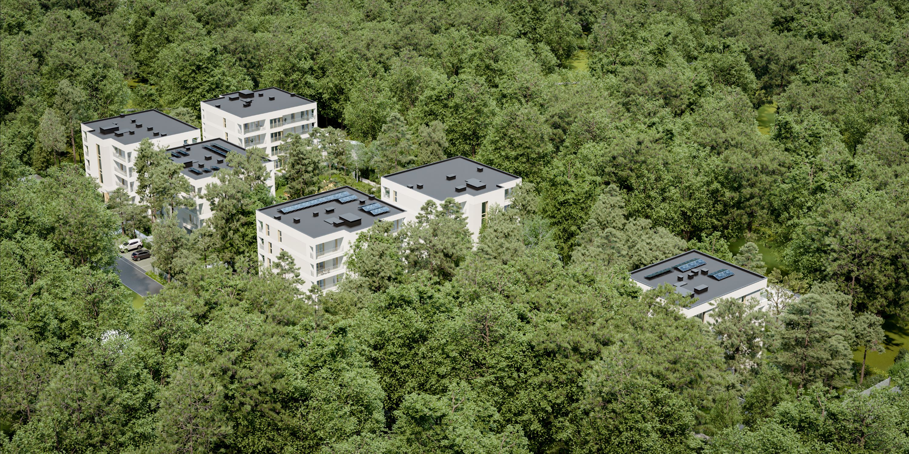 Osiedle powstaje na działce o powierzchni blisko jednego hektara. Zaplanowano sześć niewielkich budynków, które zostaną harmonijnie wkomponowane w naturalny, leśny park. W sumie inwestycja obejmie 65 mieszkań, wyposażonych w balkony, tarasy lub prywatne ogródki.