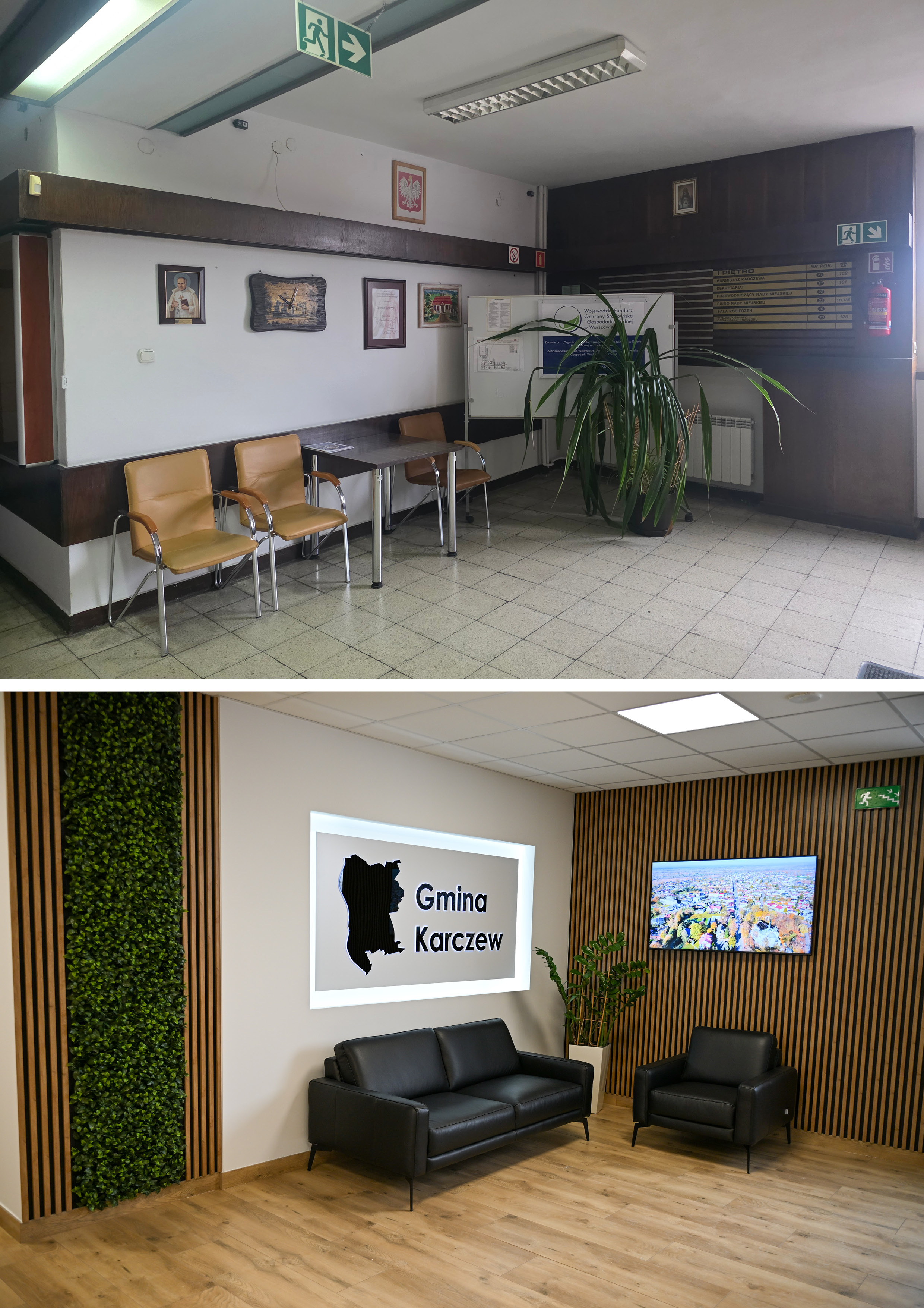– Wielu z Państwa mówiło mi, że wygląd pierwszego piętra w karczewskim urzędzie przypominał poprzednią epokę (boazeria, stare lastryko, nierówne schody, niedziałające oświetlenie, brak odpowiedniej poczekalni). I choć mam świadomość, że inwestycje w budynki urzędowe nie należą do najbardziej medialnych, w tym przypadku były po prostu konieczne – dotychczasowy standard był bardzo niski, a awarie zdarzały się częściej, niż ktokolwiek by chciał. Urząd Miejski w Karczewie to w końcu nasza wizytówka. To tu zaglądają nie tylko mieszkańcy, ale także zewnętrzne delegacje, goście i partnerzy Gminy Karczew – przekazał burmistrz Karczewa Michał Rudzki.