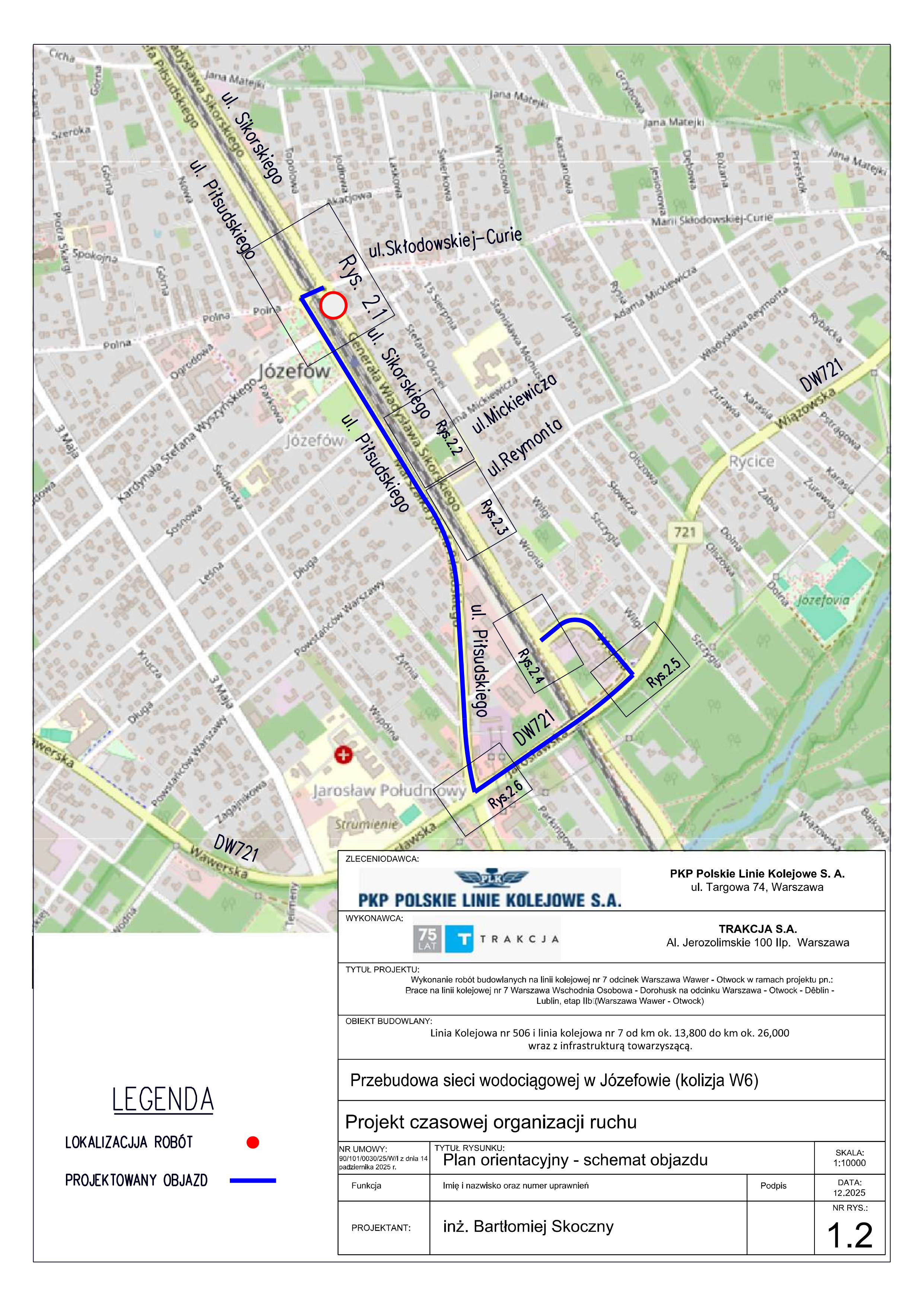 Z przekazanych informacji wynika, że sam przejazd kolejowy PKP Józefów, rondo przy przejeździe na ul. Sikorskiego oraz ul. Marii Skłodowskiej-Curie pozostaną przejezdne. Utrudnienia obejmą odcinek drogi za torami w kierunku Otwocka.