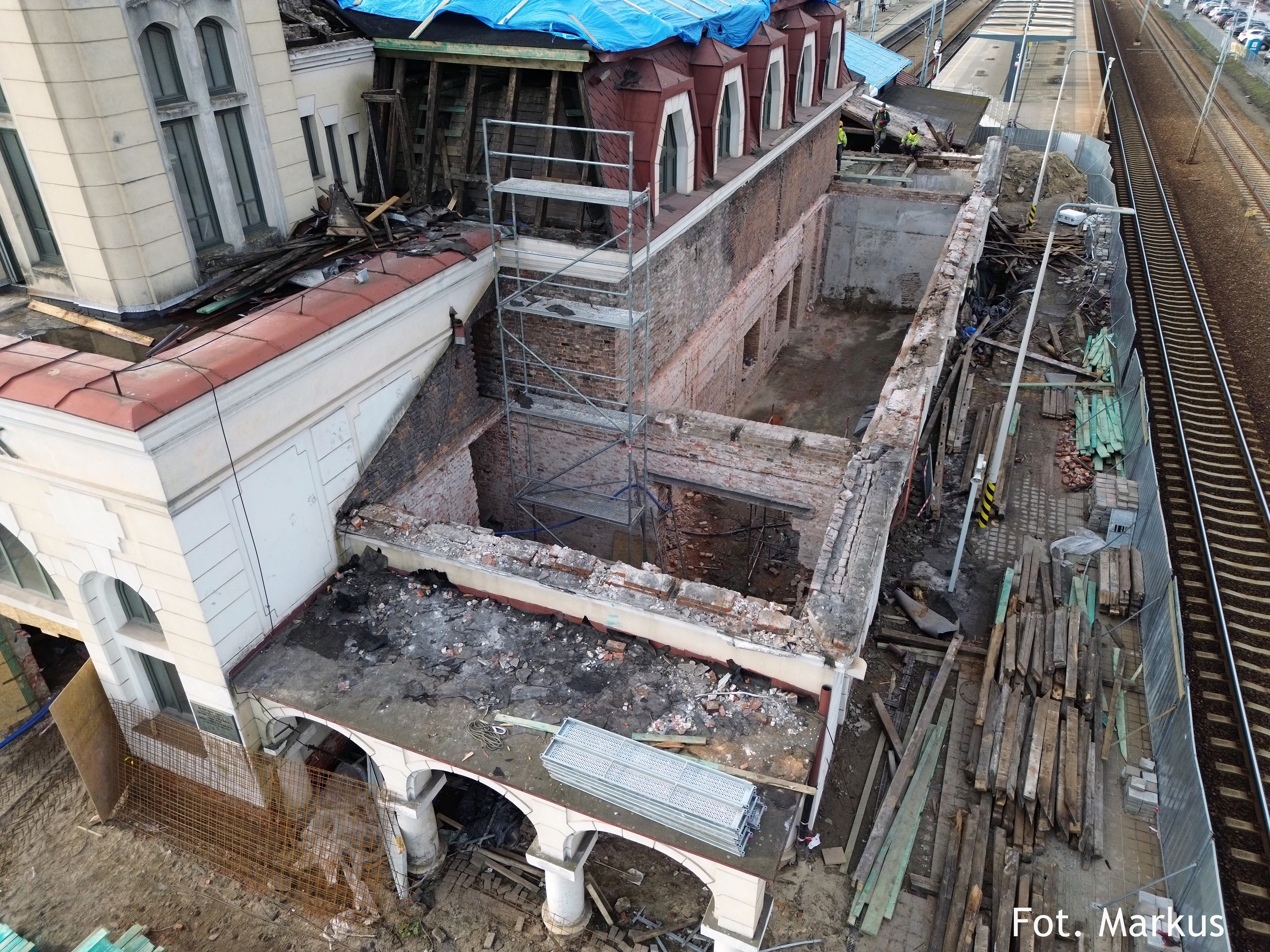 PKP S.A. wyjaśnia, że dotychczas wykonawca usunął starą nawierzchnię placu przed budynkiem, rozpoczął demontaż stolarki i dachu oraz prace wykończeniowe we wnętrzu obiektu, a także roboty instalacyjne na zewnątrz. – W najbliższym czasie zaplanowano roboty elewacyjne, wymianę stolarki, modernizację dachu oraz montaż instalacji elektrycznych, teletechnicznych i sanitarnych – wylicza inwestor.