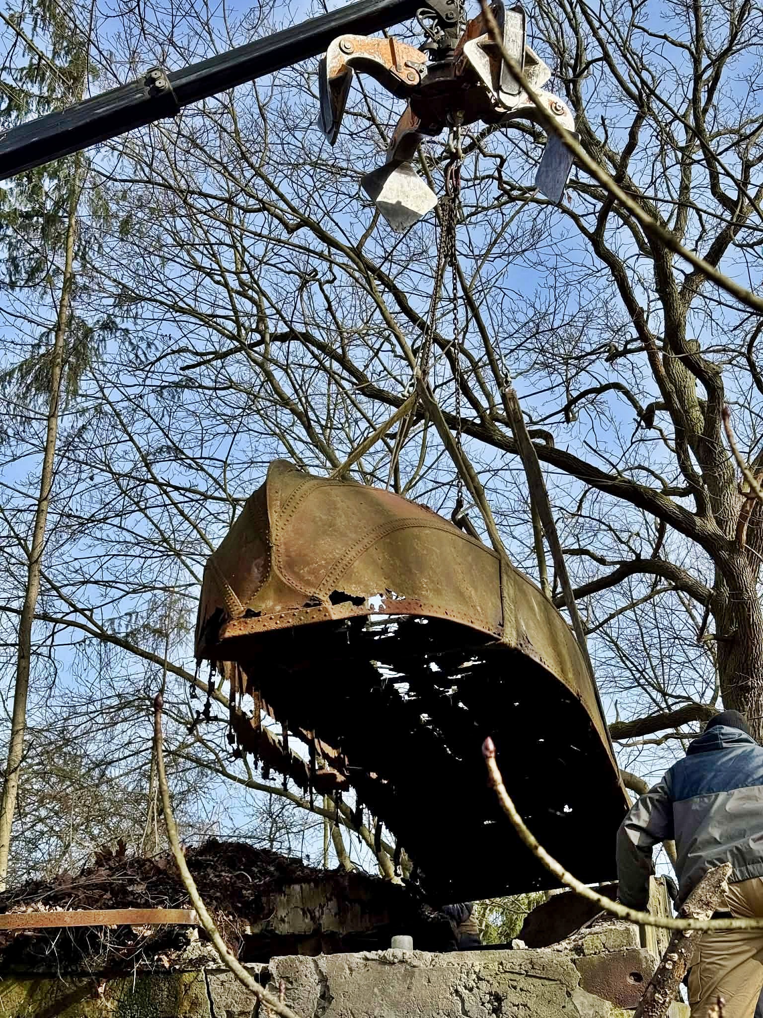 W czwartek członkowie stowarzyszenia „Nadwiślańskie Urzecze”, wspólnie z przedstawicielami Muzeum Broni Pancernej w Poznaniu, (za zgodą właścicielki terenu) zabezpieczyli na posesji nietypowy obiekt. – Była to łódź saperska, prawdopodobnie wykorzystywana w działaniach wojennych we wrześniu 1939 roku. Najpewniej należała do 2. batalionu 26. Pułku Piechoty, który został skierowany do obrony przyczółka mostowego w Świdrach Małych – wyjaśniają członkowie stowarzyszenia.