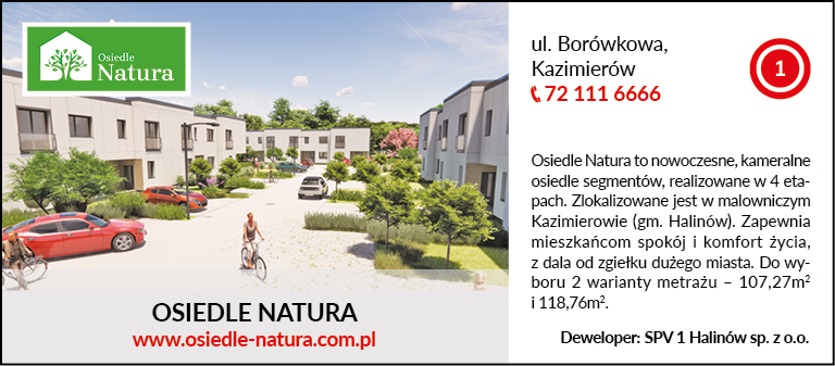 ul. Borówkowa, Kazimierów, tel. 72 111 6666, www.osiedle-natura.com.pl