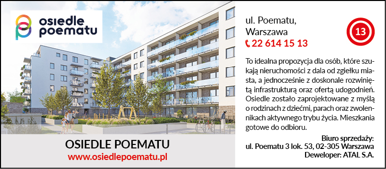 ul. Poematu, Warszawa, tel. 22 614 15 13, Biuro sprzedaży: ul. Poematu 3 lok. 53, 02-305 Warszawa, www.osiedlepoematu.pl