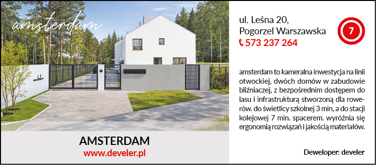 ul. Leśna 20, Pogorzel Warszawska, tel. 573 237 264, www.develer.pl