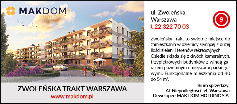 ul. Zwoleńska, Warszawa, tel. 22 322 70 03, Biuro sprzedaży: Al. Niepodległości 54, Warszawa, www.makdom.pl