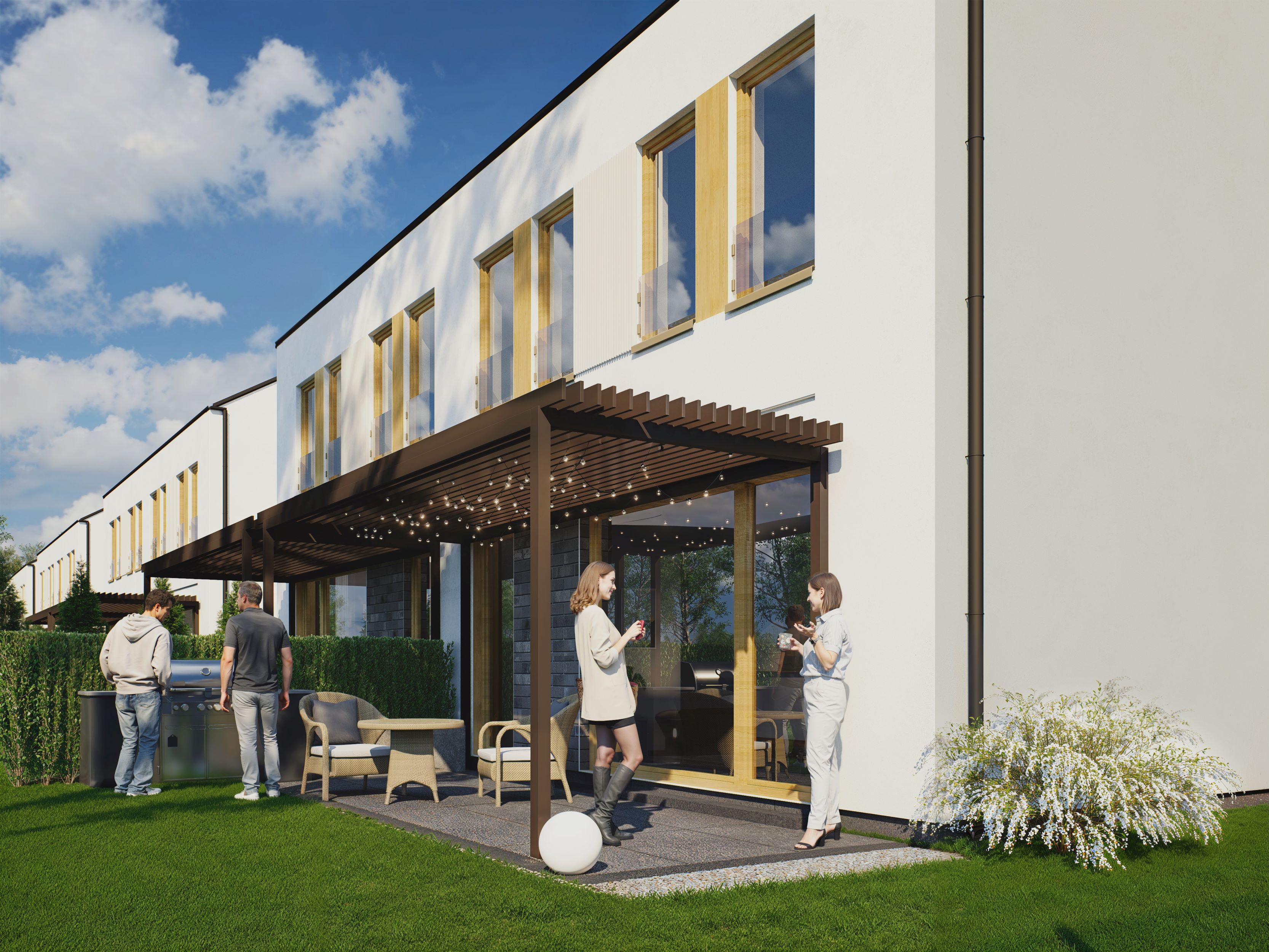 Domy oferowane są w standardzie deweloperskim, z ogrzewaniem podłogowym, rekuperacją, trzyszybowymi oknami oraz dużymi drzwiami tarasowymi HST. Przewidziano możliwość instalacji monitoringu i fotowoltaiki.