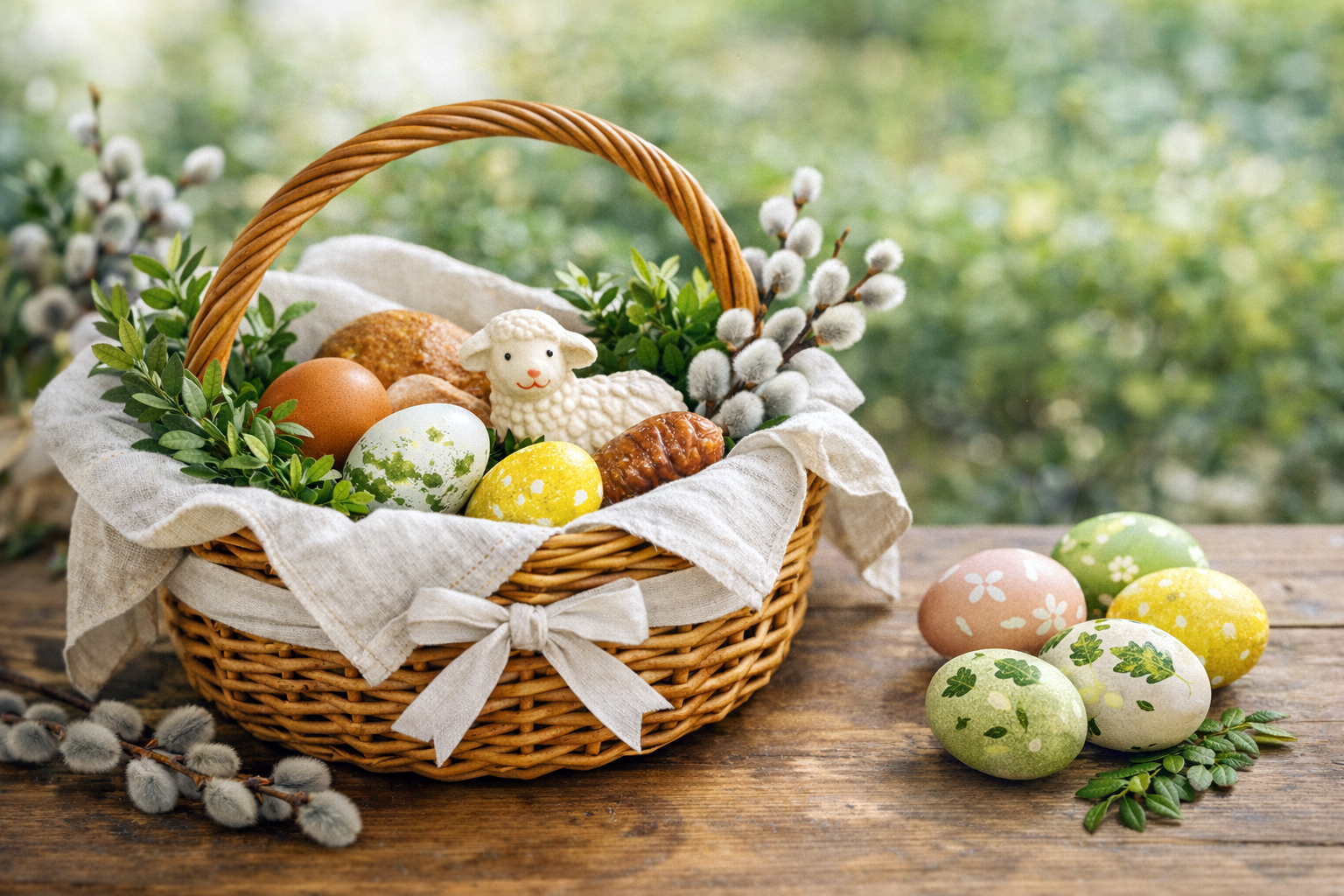 Nie mniej ważne od zawartości jest także sam wygląd koszyczka. Najczęściej wykłada się go białą serwetką i dekoruje bukszpanem, baziami albo wiosennymi gałązkami. Dzięki temu święconka wygląda uroczyście i naprawdę świątecznie. W tym roku szczególnie modne są koszyczki utrzymane w naturalnym stylu: z lnianą serwetką, prostą kokardką, odrobiną zieleni i bez nadmiaru dodatków. Taki minimalistyczny, rustykalny wygląd dobrze wpisuje się w trendy Wielkanocy 2026.