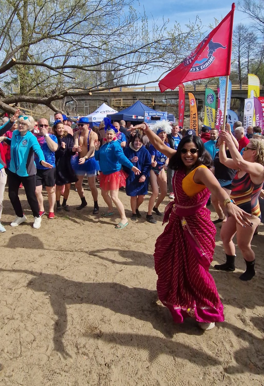 Na plaży nad Świdrem od rana panowała świetna atmosfera, a wydarzeniu towarzyszył doping kibiców. Była też energiczna, taneczna rozgrzewka w rytmach muzyki hinduskiej, wspólne wejście do zimnej rzeki oraz mnóstwo emocji i dobrej zabawy.