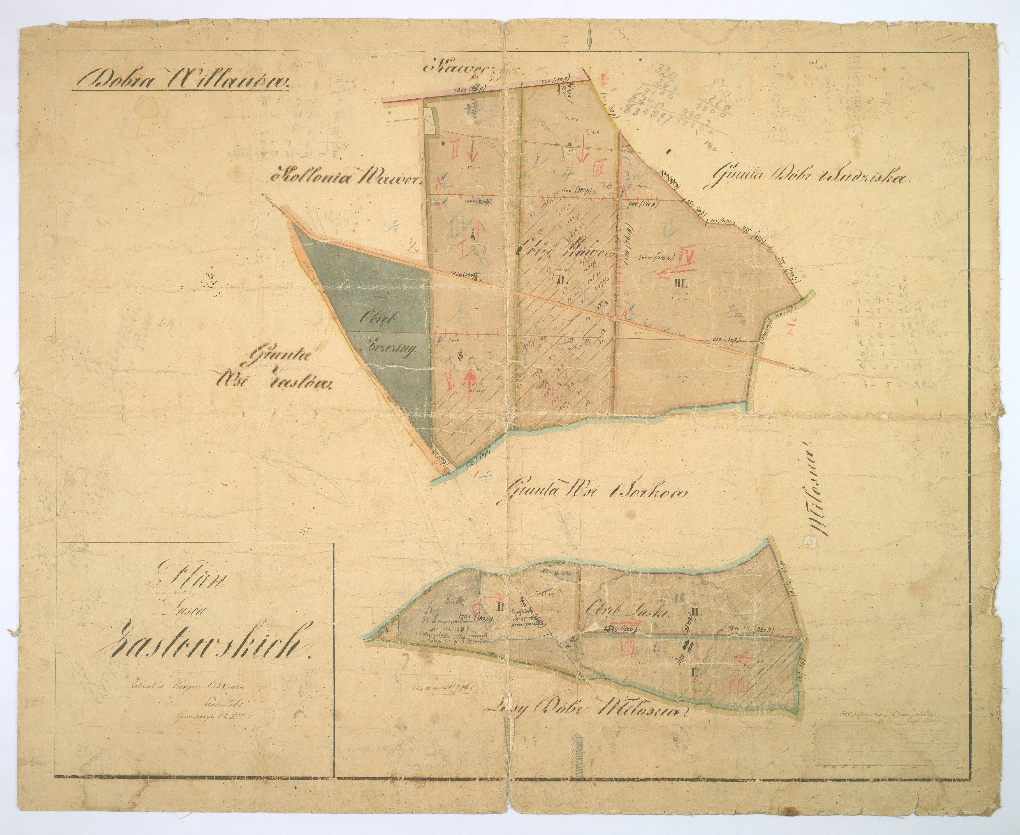 - Dobra Wilanów, Plan lasów Zastowskich, mapa z 1858 r., mapa ze zbiorów AGAD Warszawa