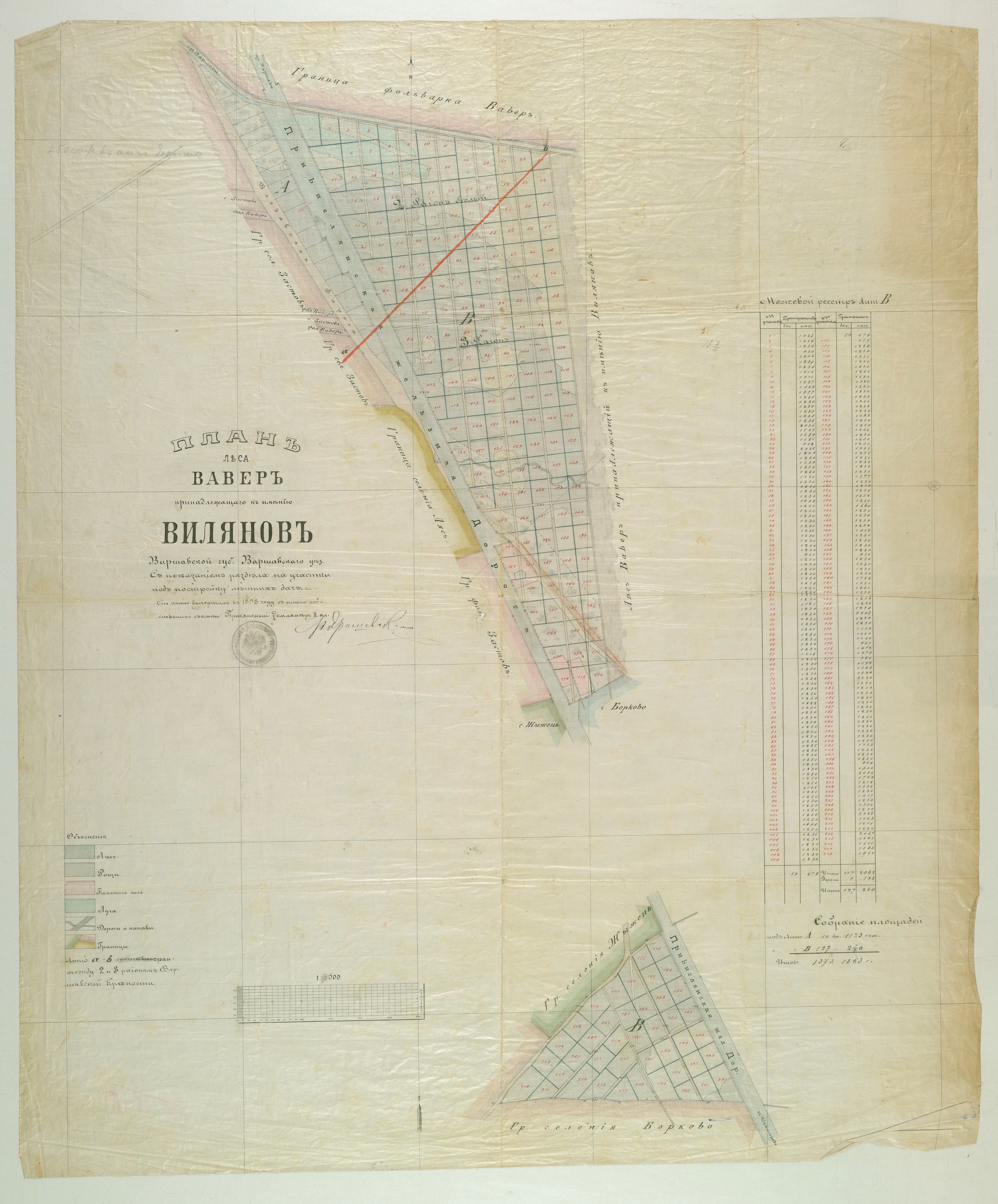 - Plan części lasu Dóbr Wilanów Leśnictwa Wawer, mapa z 1898 r. mapa ze zbiorów AGAD Warszawa