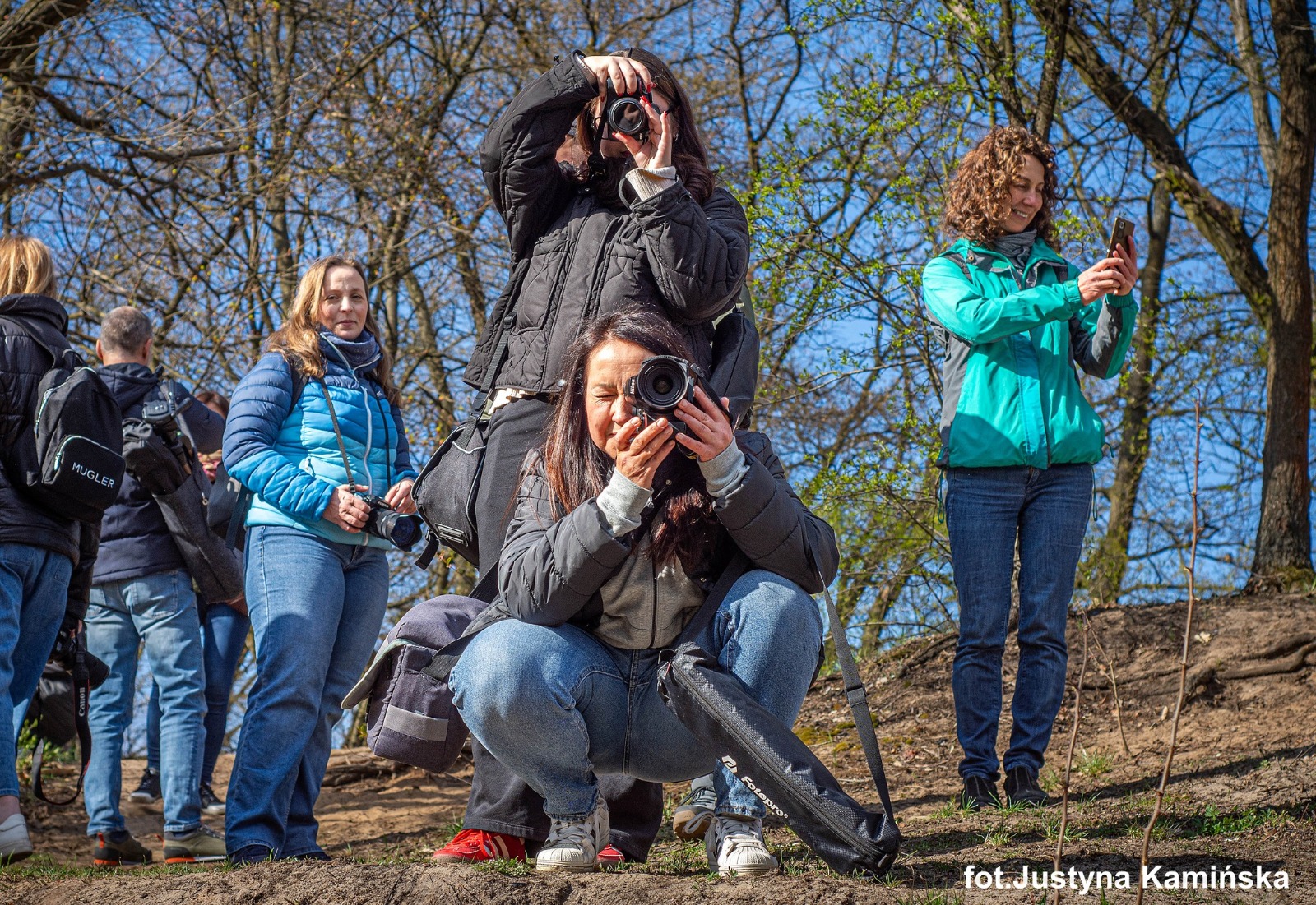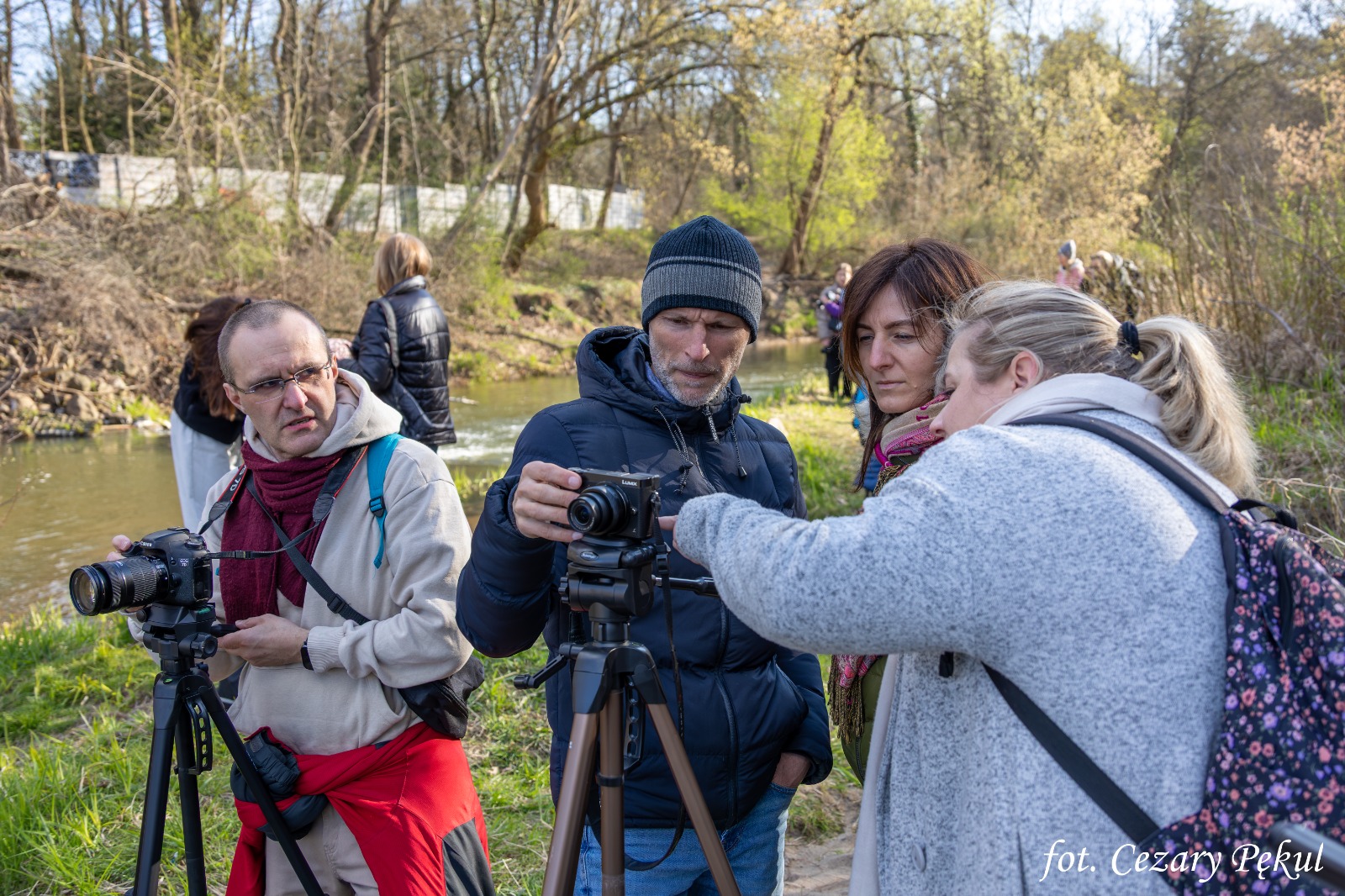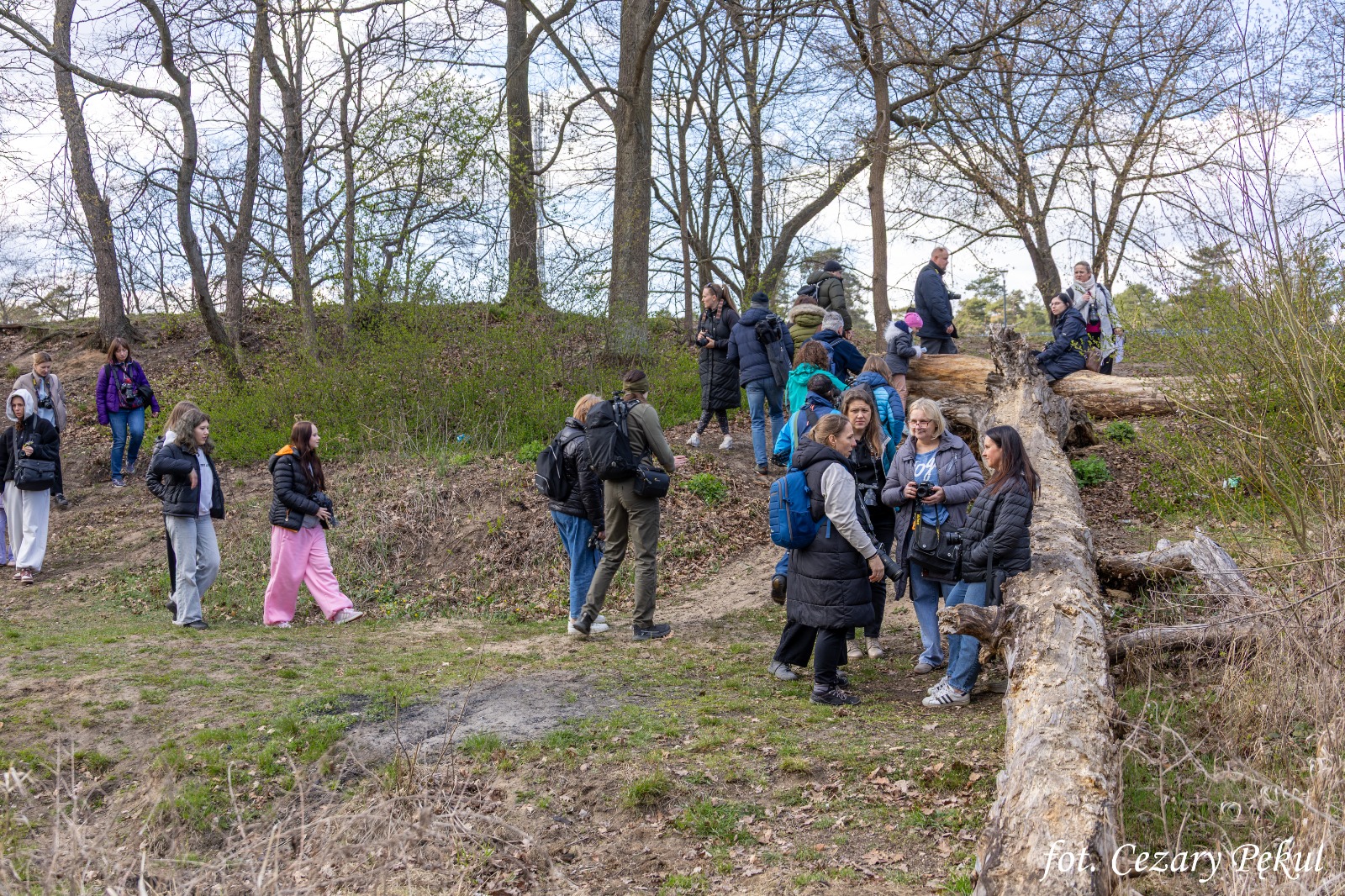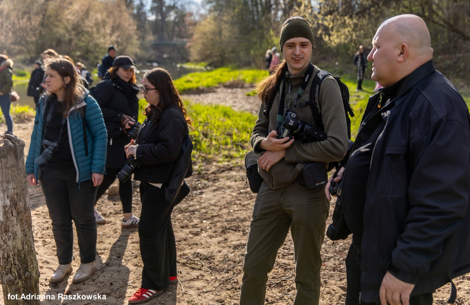 Było wiosennie i bardzo fotograficznie. Uczestnicy sobotniego spaceru w Józefowie wyruszyli w teren z aparatami i telefonami, by spojrzeć na dobrze znane miejsca nad rzeką Świder z nieco innej perspektywy – przez obiektyw. Nie zabrakło też niespodziewanego spotkania z dzikami.
