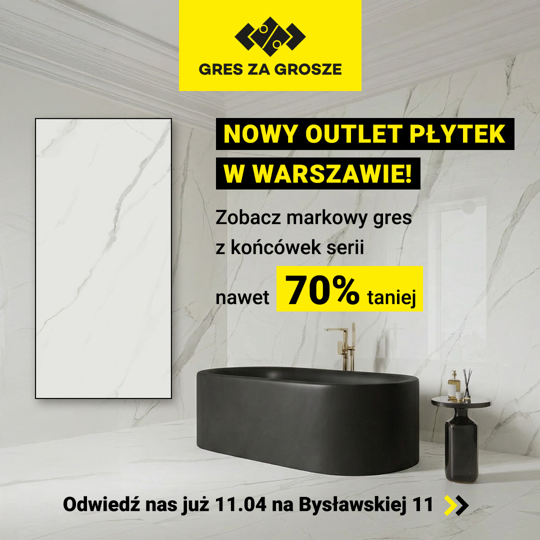 Na granicy Warszawy i Józefowa, przy ul. Bysławskiej 11, otworzył się outlet Gres za Grosze. To miejsce, które udowadnia, że te same płytki można kupić znacznie taniej.
